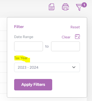 - Income Analysis: this single report provides a breakdown by property of all rent that has been paid to you, and all expenses and fees incurred, for any date range (it defaults to month to-date). The report can be printed or downloaded into a spreadsheet. It is especially useful for when you are completing your end of year tax return, as the report can be run by tax year via the filter in the top right: