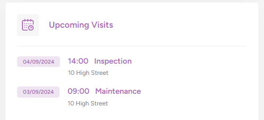 This flags up any upcoming visits booked in at your property so that you are aware (e.g. viewings, inspections, maintenance jobs):