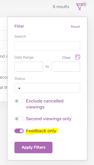The most recent feedback is available in the viewings widget on your dashboard page, but to view all feedback, click on the "Viewings" menu on the left and select "Feedback only" in the filter in the to right - click "Apply Filters" to run the report: