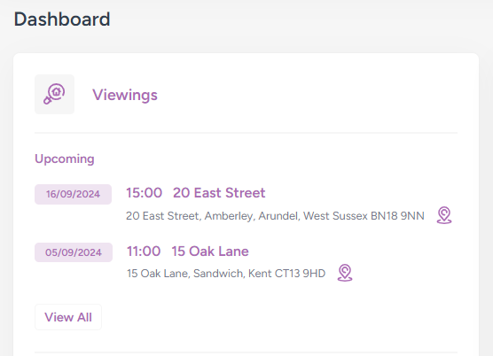 Clicking on a viewing will provide further details, including any specific arrangements for the viewings. The map icon beside the address will show the property location in your Maps app.