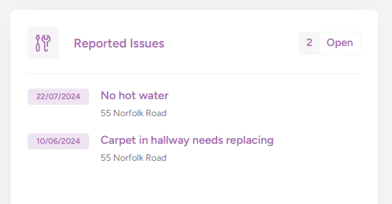 These are available in the "Reported Issues" widget on your landlord dashboard page: