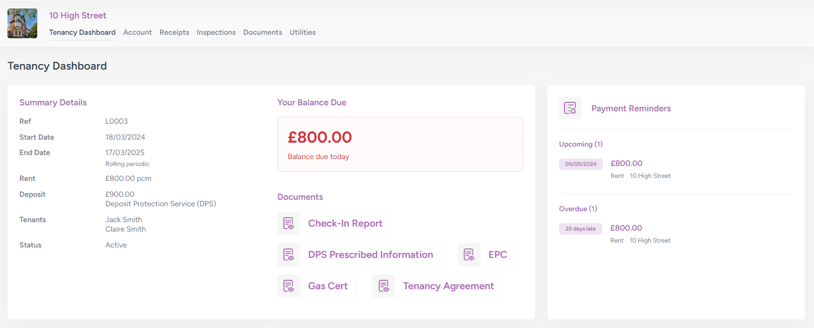 These are available on your tenancy dashboard - just click through to your current tenancy from your dashboard. This will typically included your AST, deposit documents, guarantor forms, check-in reports, plus compliance documents for the property (e.g. gas safety certificate, EPC, electrical report, etc):