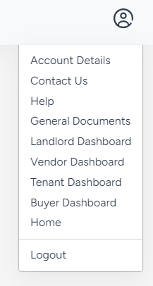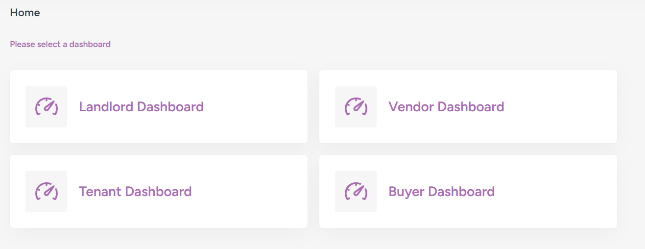The Hub has different sections for landlords, vendors, tenants and buyers. To switch between sections, just click on the logo at the top to get to the main landing page: